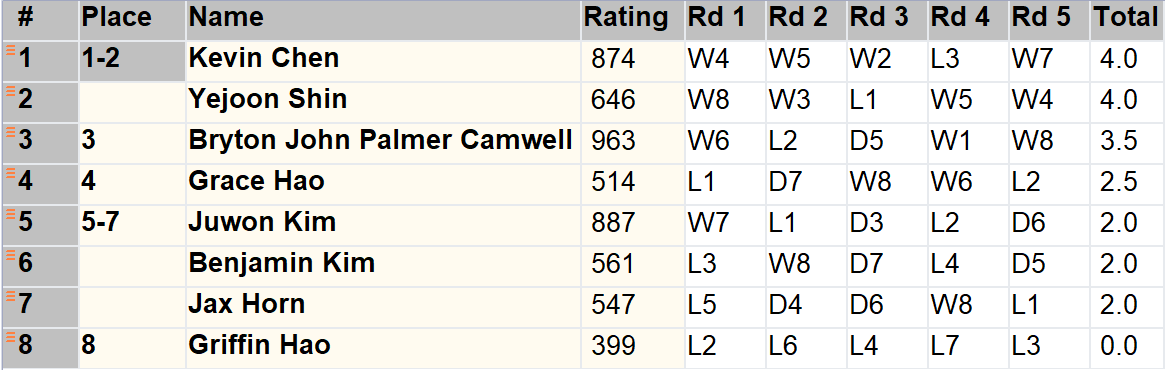 Unrated K-3 Section - Final Standings