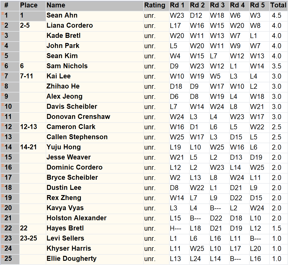 Unrated K-12 Section - Final Standings