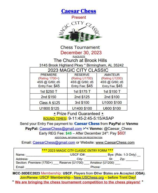 Back to All Events Magic City Classic 2023 Saturday, December 30, 2023 9:00 AM 7:30 PM The Church At Brook Hills 3145 Brook Highland Parkway Birmingham, AL, 35242 United States (map) Google Calendar ICS Register Now!